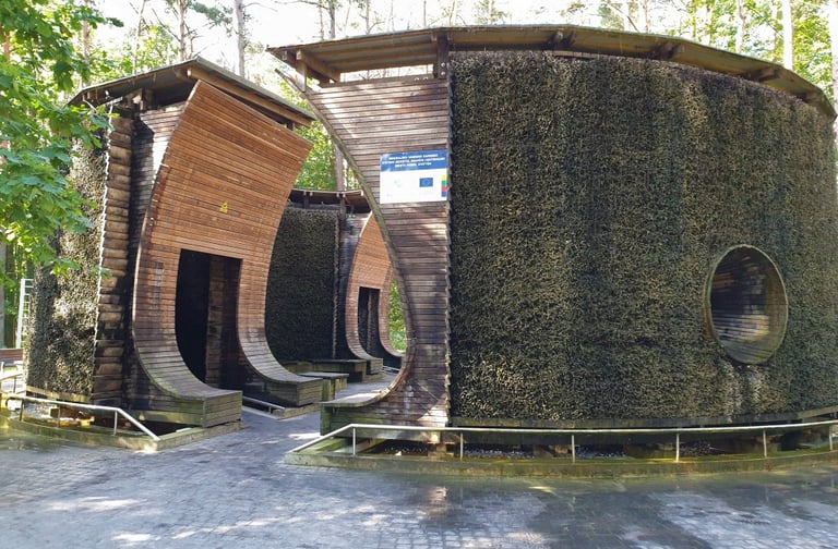 Another must-visit place is the Birštonas Mineral Water Evaporation Tower. The air here is rich in minerals, making a walk around it feel like a natural wellness ritual. In summer, it’s refreshing; in autumn and winter, it smells of salt and Birštonas calmness.